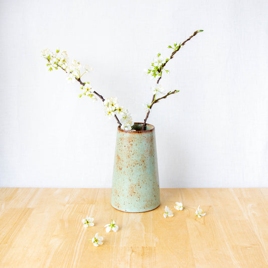 Tapered Vase Abstract Topographic Pattern Green Stone