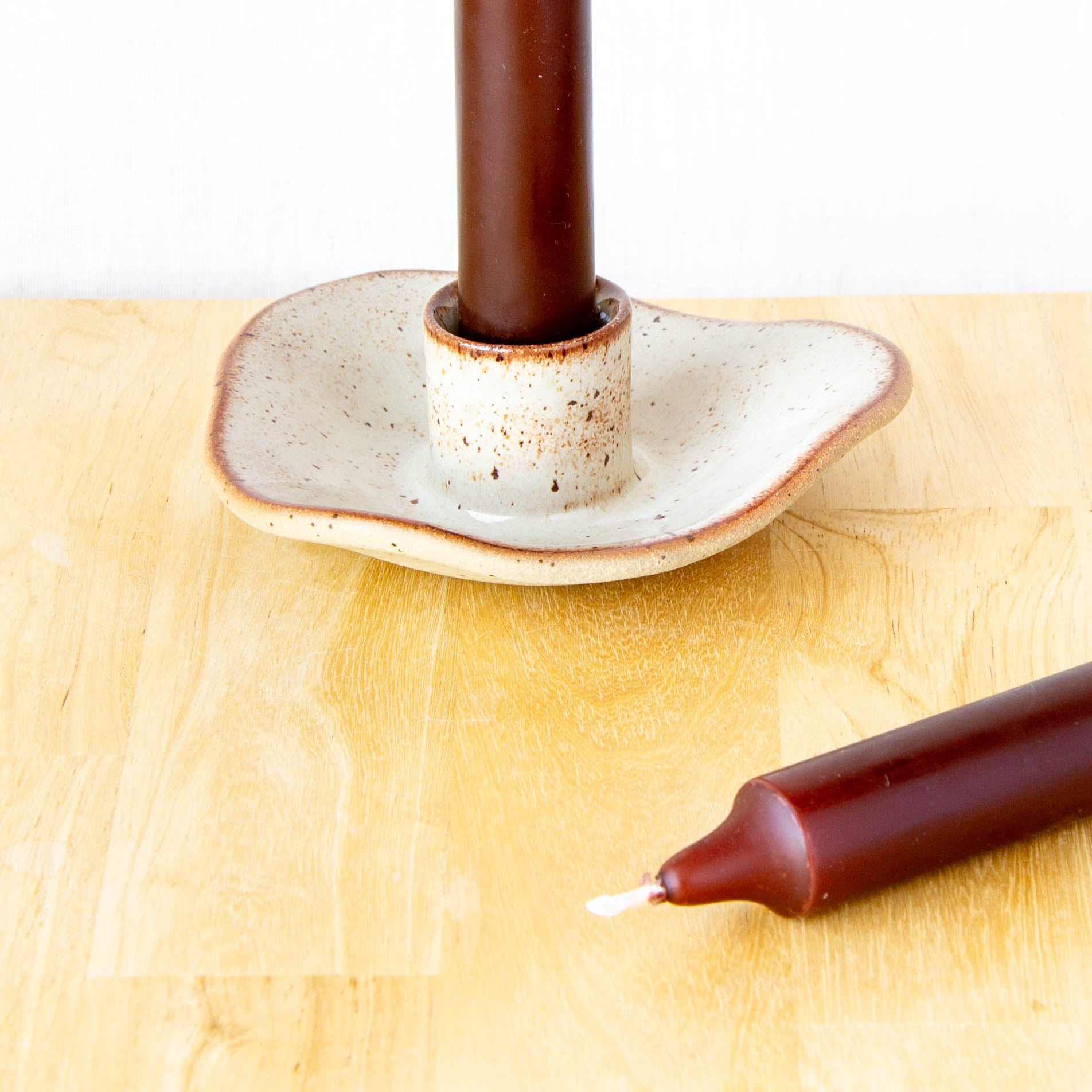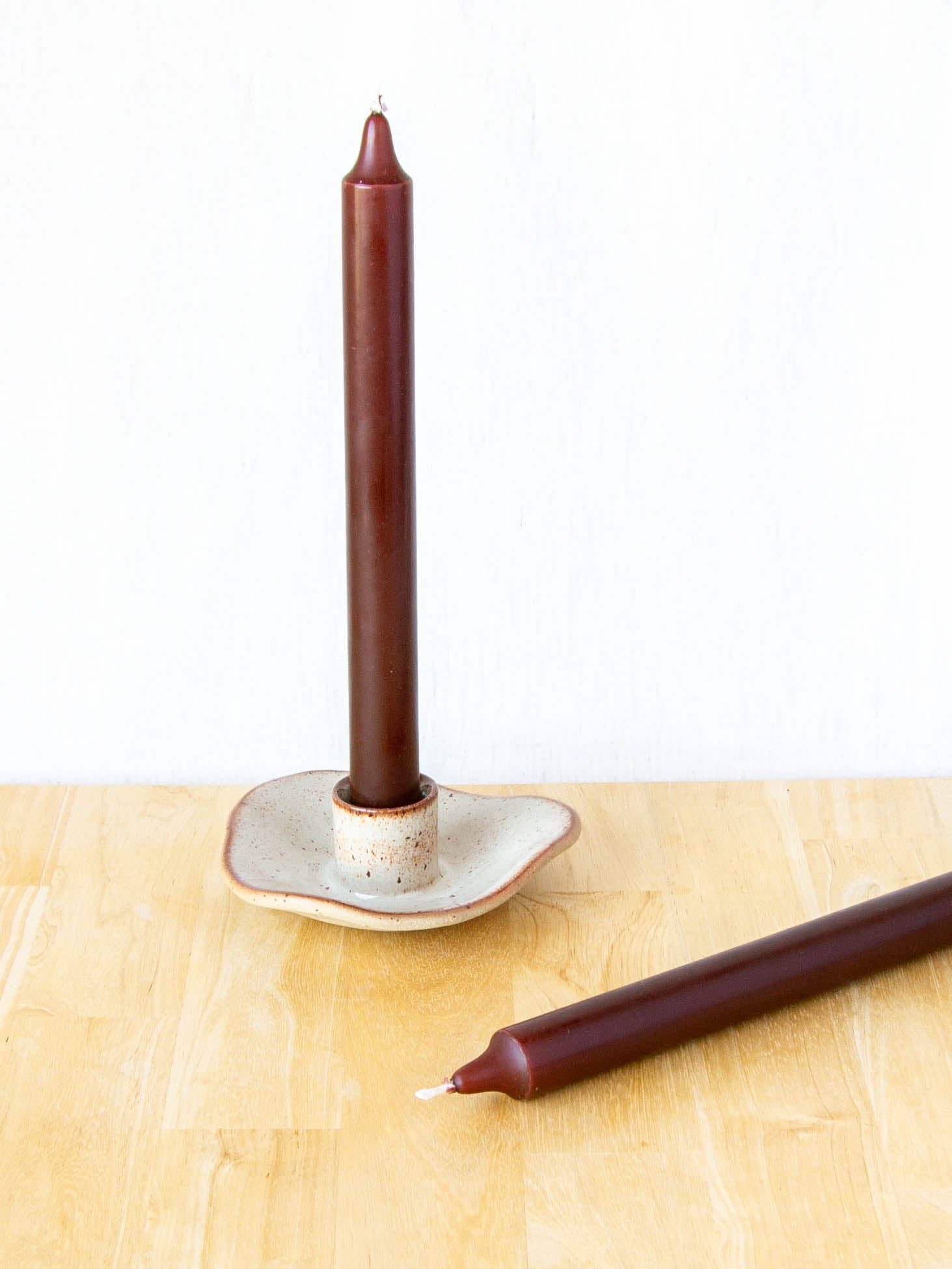 While each candle holder dish has its own, uniquely organic form I do my best to make the collar that holds the candle as consistent in size as possible. However, due to the handmade nature of them, there may be slight variations - I have also found that candles often differ in diameter a little, even from the same maker. If you find they are a little loose-fitting, you can carefully melt the base of the candle and drip a little wax into the hole to secure it. There is a slight taper to the rim of the hole to allow for a more universal fit, however if your candle stick is too wide you can shave a small amount from the base until it fits snugly.