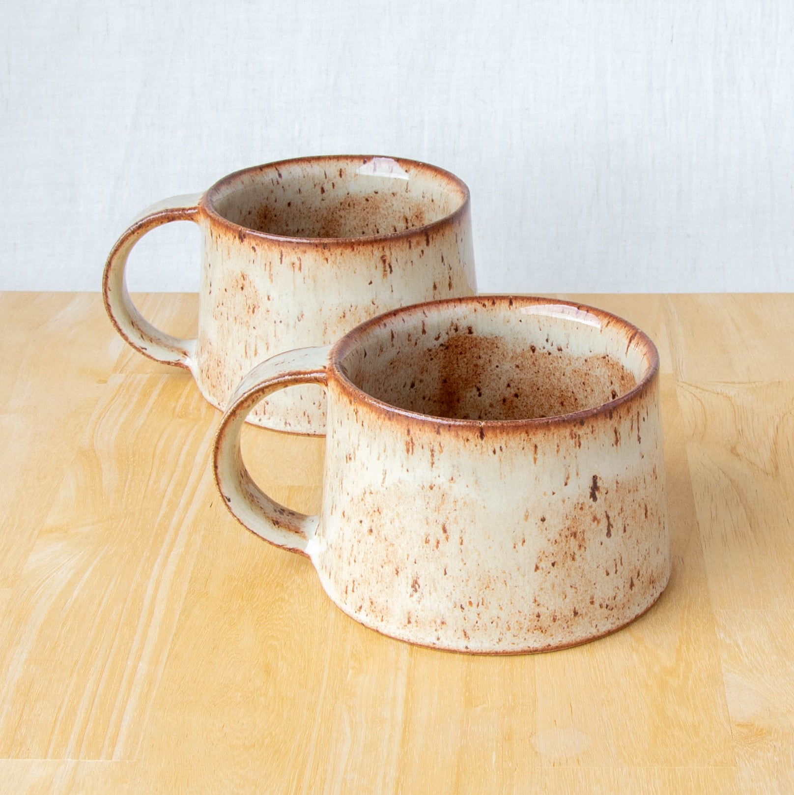 The gently tapered walls of this mug offer the perfect canvas for some of my favourite glazes. The uncomplicated yet interesting form allows the wabi-sabi qualities of the glaze and clay to shine through.